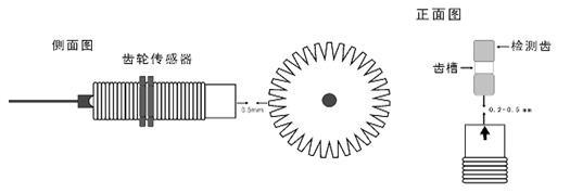 安裝時傳感器的方向標(biāo)志線及檢測面要正對齒輪的中心。